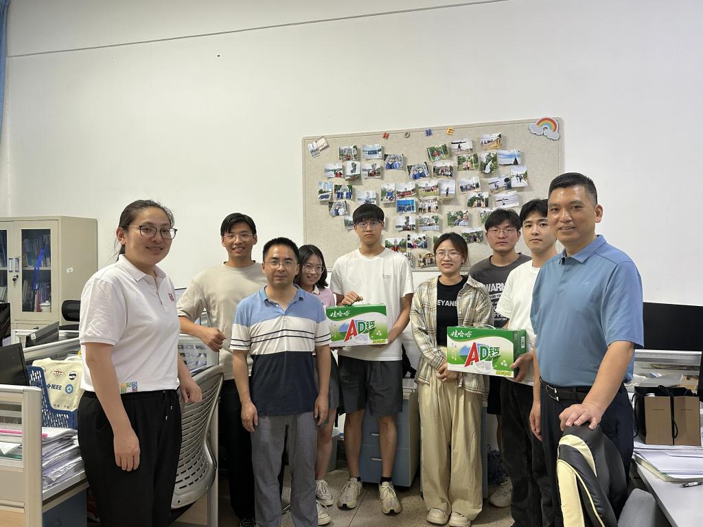 在学生宿舍和研究生实验室,老师们为留校学生送去了学院准备的消暑饮品,提醒学生重视假期宿舍、实验室安全问题,同时关心园区停电期间学生临时搬迁的准备情况。与留校考研学生的交流中,孔丽丹详细询问学生的目标院校、考研学习规划和复习备考进度等,她鼓励同学们抓住暑期黄金时间,科学规划、劳逸结合,全力备战,祝愿同学们能够梦想成真,一战成硕。与研究生的交流中,陶洪峰关心大家的科研进度和研究成果,对同学们不畏高温酷暑坚持开展科研的精神表示肯定,他希望同学们主动加强与导师的沟通,以积极的态度和不懈的努力追求学术上的进步。
