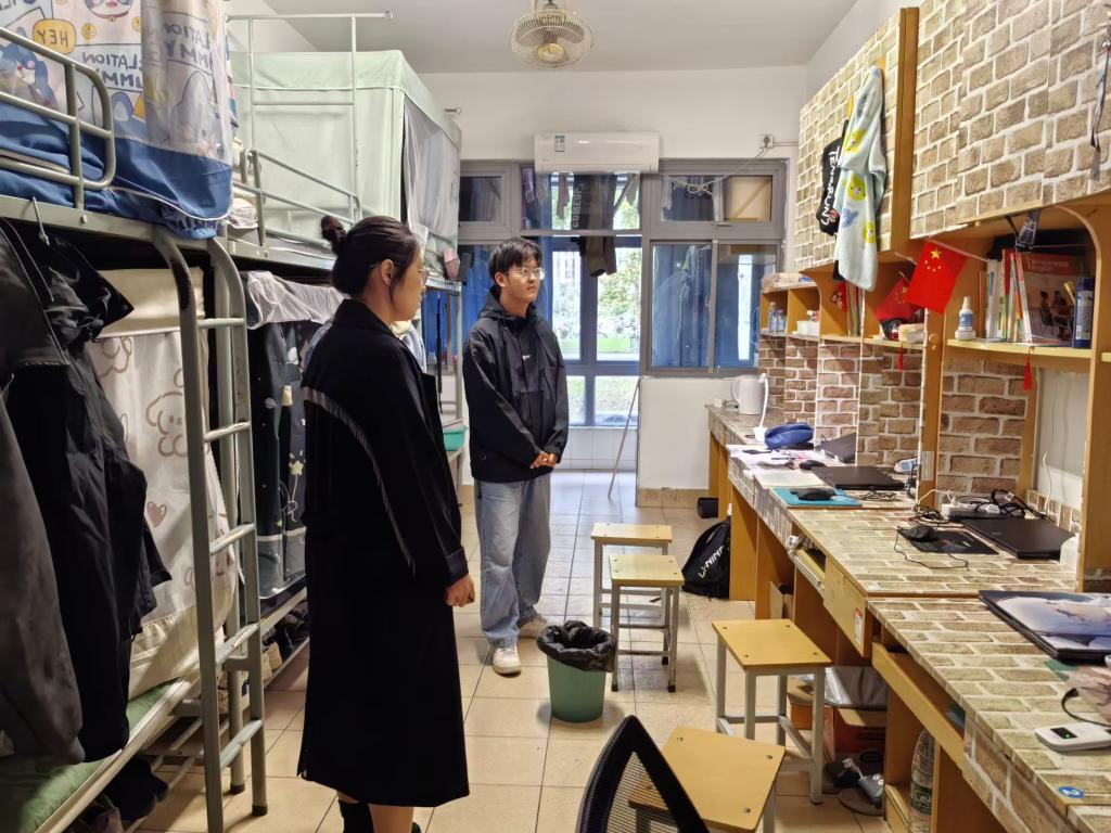 此次活动,学院组建了一支由辅导员、学生干部及学生会生活服务部成员组成的“爱心走访队”,走进桃园、梅园、榴园、桔园、桂园及泓苑六大宿舍区,覆盖了超过200间学生宿舍,与数百名学子进行了心贴心的交流。每一次走访,都是一次对学生生活环境的细致审视,更是学院对学生成长环境重视与关怀的生动体现。
