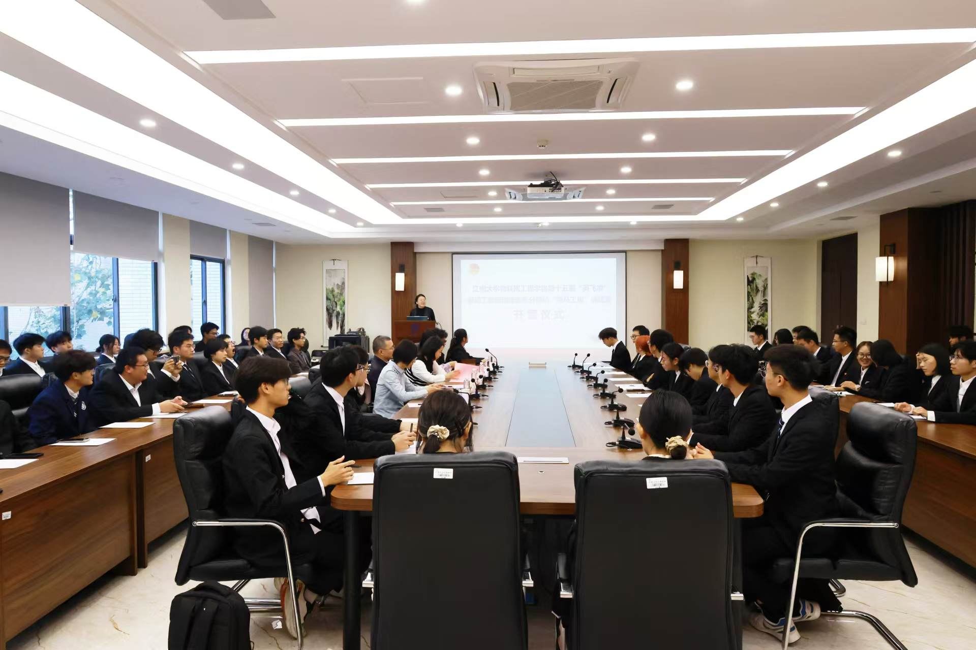 院学生会团学事务部负责人刘淇从破冰之行、梦想启航、专业领航、职业导航四个方面介绍训练营的具体安排。自动化2404班的邱梦馨作为第十五届训练营营员代表发言,号召营员们珍惜平台、踊跃参与、认真学习,在实践中突破自我、在学习中升华品格。