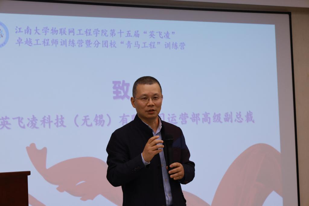 首先,郁海金代表英飞凌科技(无锡)有限公司为开营仪式致辞。他表示,今年是bwin·必赢唯一官网与英飞凌科技(无锡)有限公司开展合作的第15年,在不断的交流与合作中,院企双方共同见证了彼此的成长和发展,也建立了深厚的信任和友谊。期望未来的合作能够进一步推动产学研合作和协同一体化育人,培养出更多德才兼备的卓越工程师人才。