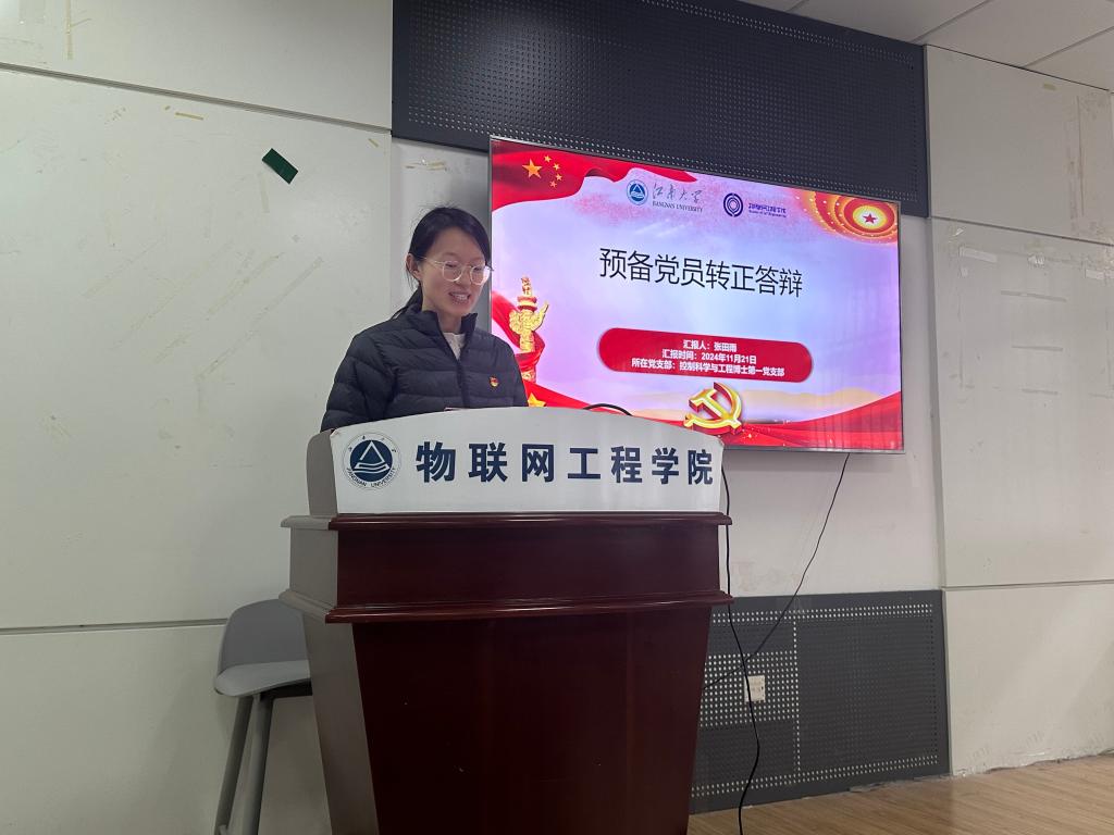 为深入贯彻落实学生党员发展“三投票、三公示、一答辩”制度,进一步加强党员队伍建设,切实提升党员发展质量,11月21日下午,bwin·必赢唯一官网于C121会议室举行2024年下半年预备党员转正答辩会。答辩会由各党支部书记、支委担任答辩组评委,2024年下半年拟转正的17名预备党员参加答辩,各支部党员代表共同参加了本次活动。
