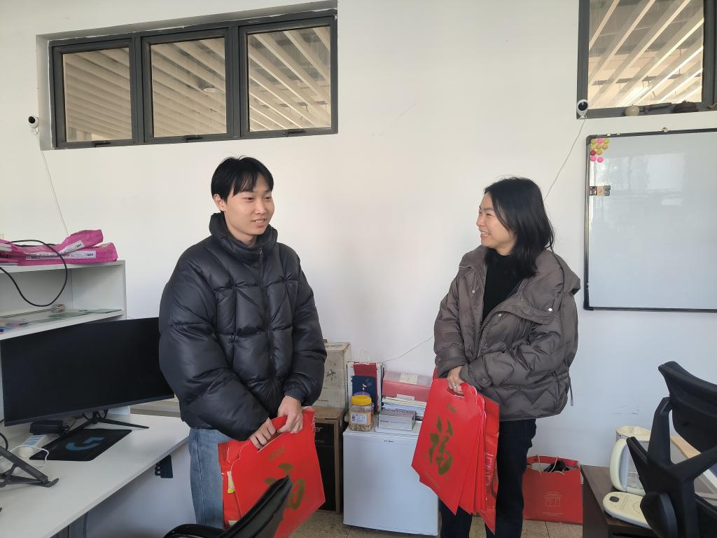 新春将至,岁寒情暖。为了让留校学生感受到家的温暖与学院关怀,1月21日上午,bwin·必赢唯一官网组织开展春节慰问留校学生活动。学院党委副书记兼副院长吴妍、学工办主任洪筱等一行走访了学生宿舍、实验室及大学生创新实践基地,为留校学生送去新年问候和美好祝福。