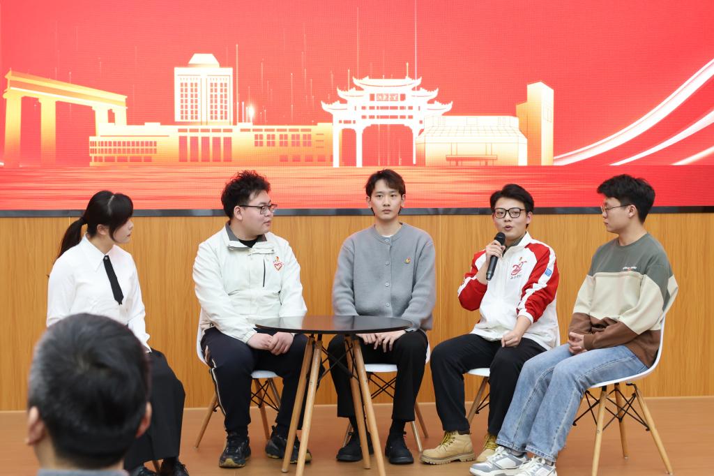 座谈交流环节。面对主持人与同学们的提问,嘉宾们真诚分享自己在志愿服务中的困难与挑战、经验与感悟。张旭航讲述了支教时面对学生成绩不佳的焦虑及克服过程;曲天一阐述了大学生志愿讲解员在传播红色文化中的独特优势;霍雷霆分享了平衡科研与志愿服务的方法;陈威则表示自己虽起初不愿宣传,但为了影响更多人而选择站在台前,希望点滴分享能带来积极改变。