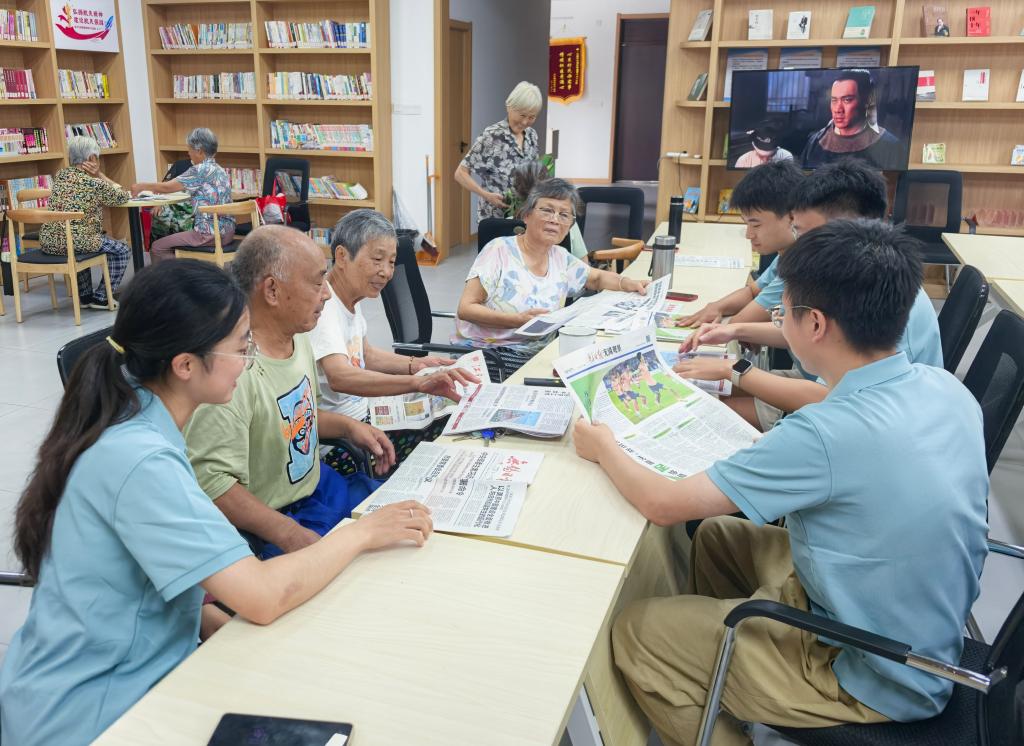 敬老陪伴暖人心,传递青春“数智温度”。实践团注重科技与人文并行、服务与学习共进。下午,成员们来到活动中心多功能室,开展“乒乓会友,书香传情”敬老主题活动。同学们与社区居民共同进行乒乓球友谊赛,陪伴阅读、朗读新闻,还在交流中耐心帮助老人掌握智能手机基础应用,如视频通话、查看天气、线上购药等,用实际行动缩短“数字鸿沟”,传递“青老共融”的温暖情谊,展现物联网学子的另一面——不仅懂技术,更懂人心。