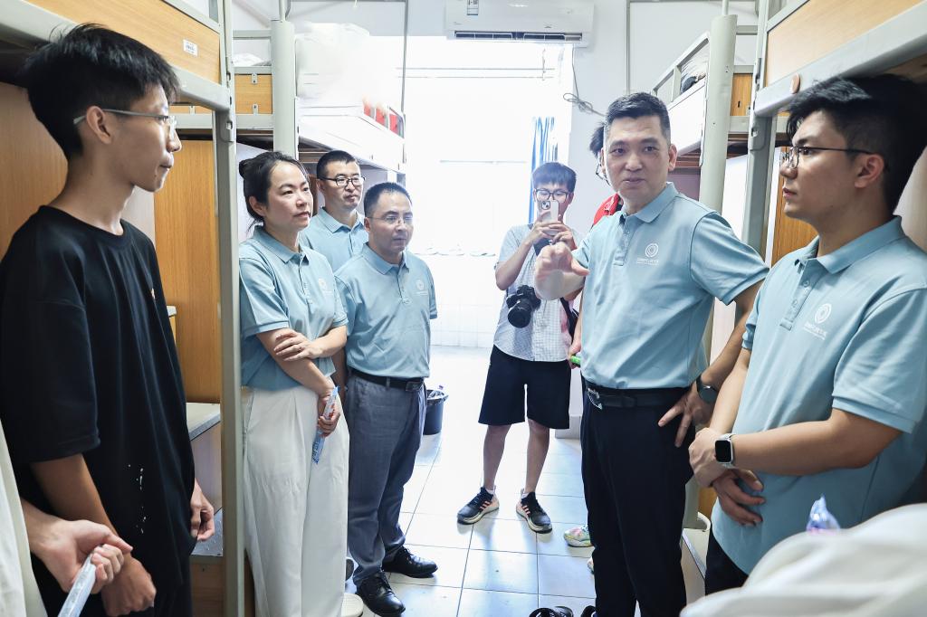 为确保迎新工作的高效有序,学院提前制定了周密的迎新方案。报到当天,从信息注册、身份核验到物资领取,环节井然有序。志愿者和学长学姐们积极引导、细致解答,帮助新生完成各类手续,并协助行李搬运与生活指引。中国工程院院士、校长陈卫,副校长李兆丰及相关职能部门领导来到学院报到现场,与新生进行亲切交流,关切询问适应情况与生活所需,并参与现场互动体验活动。Bwin必赢领导班子、辅导员、班主任深入新生宿舍走访,送上温暖的慰问与诚挚的祝福。从学业方向到生活细节,每一句话都饱含着对新同学的关怀与期待。
