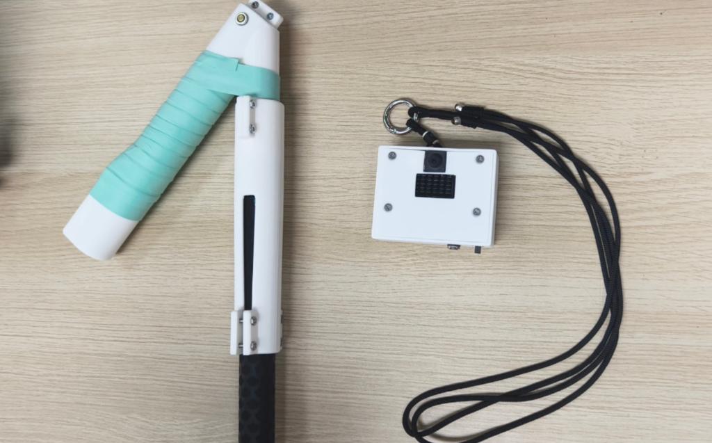 该获奖作品《智能视障辅助系统》着眼于视障人群出行中的安全防护与环境感知需求,创新设计出一套由盲杖手柄端与胸前可穿戴终端协同工作的多尺度辅助系统。手柄端集成激光测距与九轴陀螺仪等多源传感器,可实现厘米级障碍物探测及实时姿态监测;胸前终端内置高性能AI SoC,搭载经优化的YOLOv8目标检测算法,能够在毫秒级完成图像识别与分类,并结合多模态语音交互技术,实现实时场景解析与自然语言播报,显著增强用户对周边环境的感知能力。系统采用可调节夹持结构,兼容市面主流盲杖,配备磁吸式快充接口与低功耗待机方案,兼顾续航能力与使用便捷性。该作品不仅有效提升视障人士出行的安全性与信息获取效率,也为智能助盲设备的研发提供了新思路。