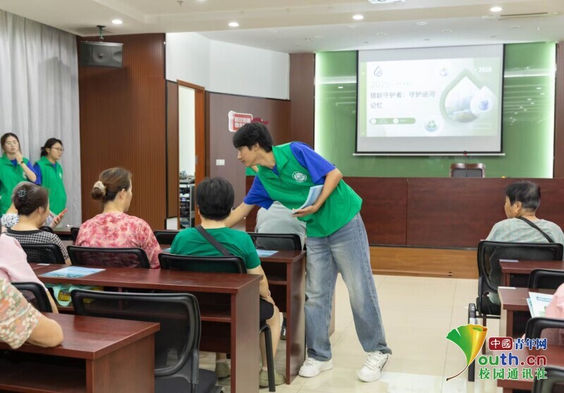 图为实践团成员刘雯丽为社区老人展开河道保护科普讲堂。孙涵 供图